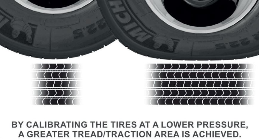 This is achieved with an electronic mechanism operated from the cabin, which allows to calibrate (reach and maintain) the tires at the set pressures.
